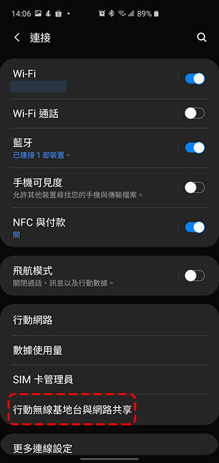 或是你也可以從「設定>>連接>>行動無線基地台與網路共享」這個路徑中進入 WiFi 選擇介面。