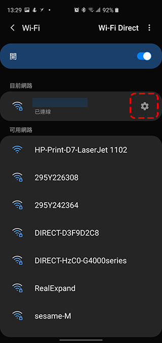 2. 點選你正連接使用的 WiFi 後面的齒輪設定圖示進入 WiFi 細節頁。