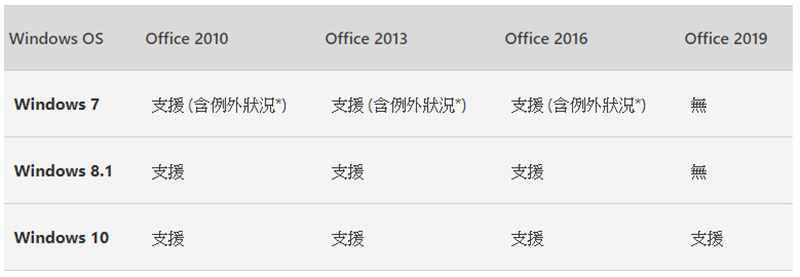 但因 Microsoft 並未終止非訂閱版本的支援,如果你因為某些因素而必須堅守 Windows 7 作業系統,建議可以轉而使用 Office 2016 或下面表格中非訂閱版本的 Office,這些版本只要在 Microsoft 的週期原則中都還是可以享有支援。
