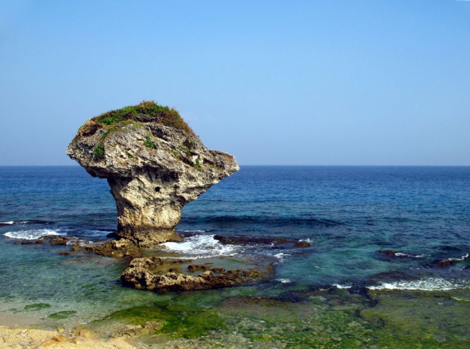 望海亭位於美人洞景區。雖說小琉球的海景唾手可得,但是都沒有望海亭來得獨樹一幟。在望海亭遠眺,可以看到巍峨的海崖,以及碧綠海面張牙舞爪延伸出去的珊瑚群礁,遠處則無縫接軌海的蔚藍,漸變調色蔓延天邊。