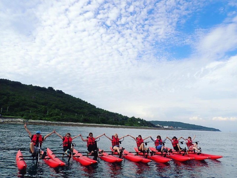 小琉球整座島嶼及附近海域皆屬於保護區,因此禁用機械動力水上遊憩器具,小琉球的海上活動都要靠自己,全台唯一「水上自行車」就是依靠自己的雙腳產生動力,機身輕巧,輕輕踩踏就能前進、後退,龍頭則用來調整方向,有點像簡易版天鵝船,設備簡單卻不馬虎,視野還超級好!