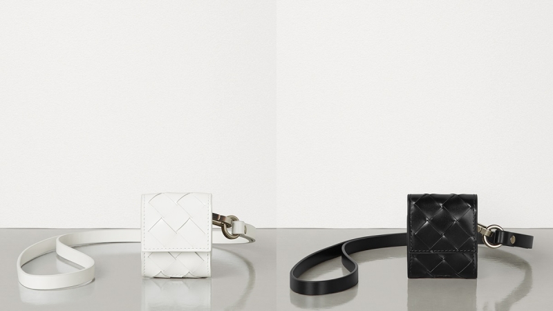 運用品牌最著稱的皮革編織工藝打造的Airpods皮革保護套,在釦環處呈現Bottega Veneta LOGO字樣相當精緻,加上貼心的皮革掛繩設計,方便使用者可隨身攜帶無線耳機,也可以扣在皮帶、手袋上,或是當成項鍊點綴穿搭風格,目前台灣已經在專賣店上可以買到,喜歡的人不妨去店上摸摸實品。