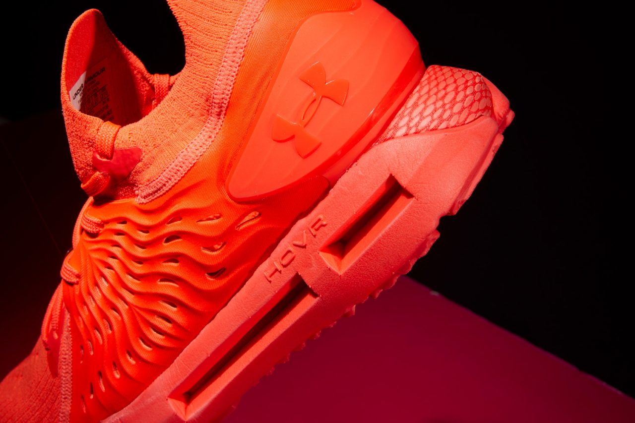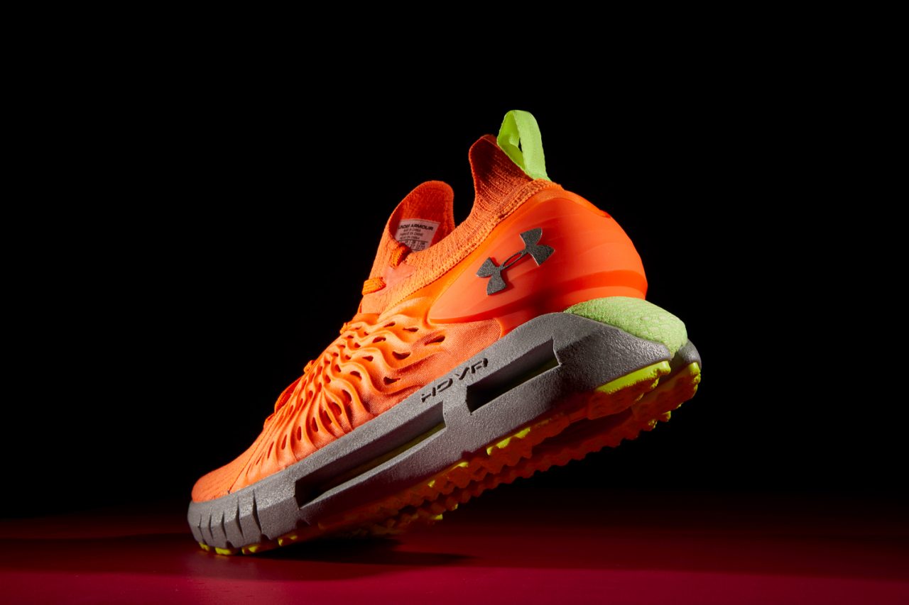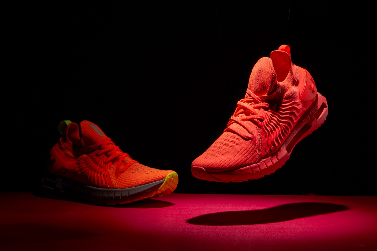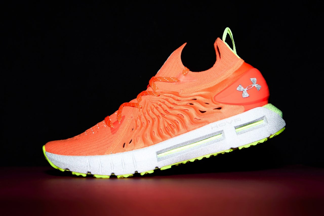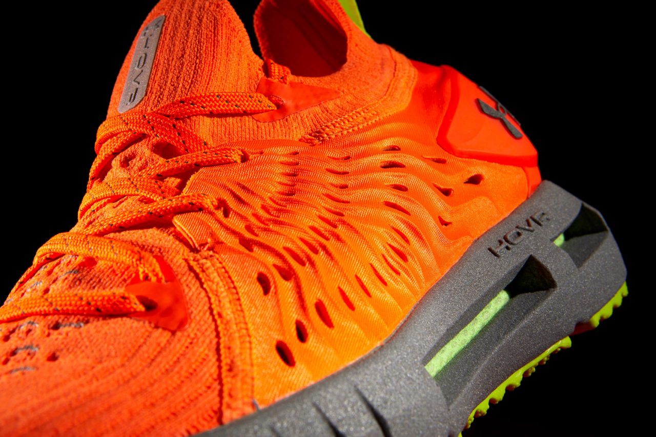 看完 HOVR 科技,話題再回到 Under Armour 設計團隊設下的四大目標,前面我們已經看過「中足鎖定」、「減少異物感」、「透氣程度」,至於最後一項「增加反射效果」答案就在這款夜跑特殊配色身上。設計師 Reggie Wilson 透露配色靈感來自建築工人所穿的工作服常見之顏色,鮮豔的橘色系為主體在一般情況下就很容易令目光停留在鞋子上,而當身處弱光環境時,就變成鞋跟拉環、中底以及外底披上的螢光綠是重點了,因為昏暗空間裡人類眼睛對綠色會較為敏感,以此提升夜跑安全性,更不用說若有一道光照來,中底外殼表面的反光材質直接閃一波,想要沒看到 HOVR Phantom RN 都很難,目標清單上的最後一項「增加反射效果」打勾!