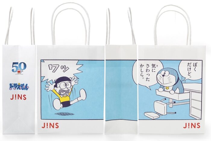 為紀念《哆啦A夢》連載50週年,JINS將《哆啦A夢》的要素融入眼鏡設計與配色中,推出共4個系列的「JINS哆啦A夢系列眼鏡」限定商品,將於02月08日起發售,屆時還會舉辦特別企劃抽獎活動,讓消費者有機會抽中JINS原創的「哆啦A夢達摩不倒翁」。