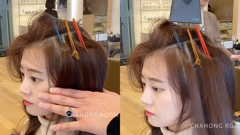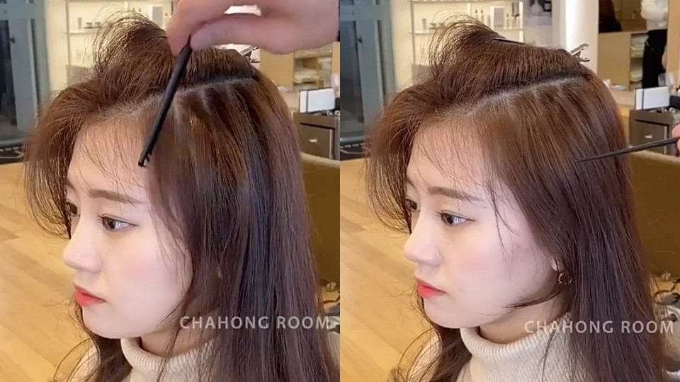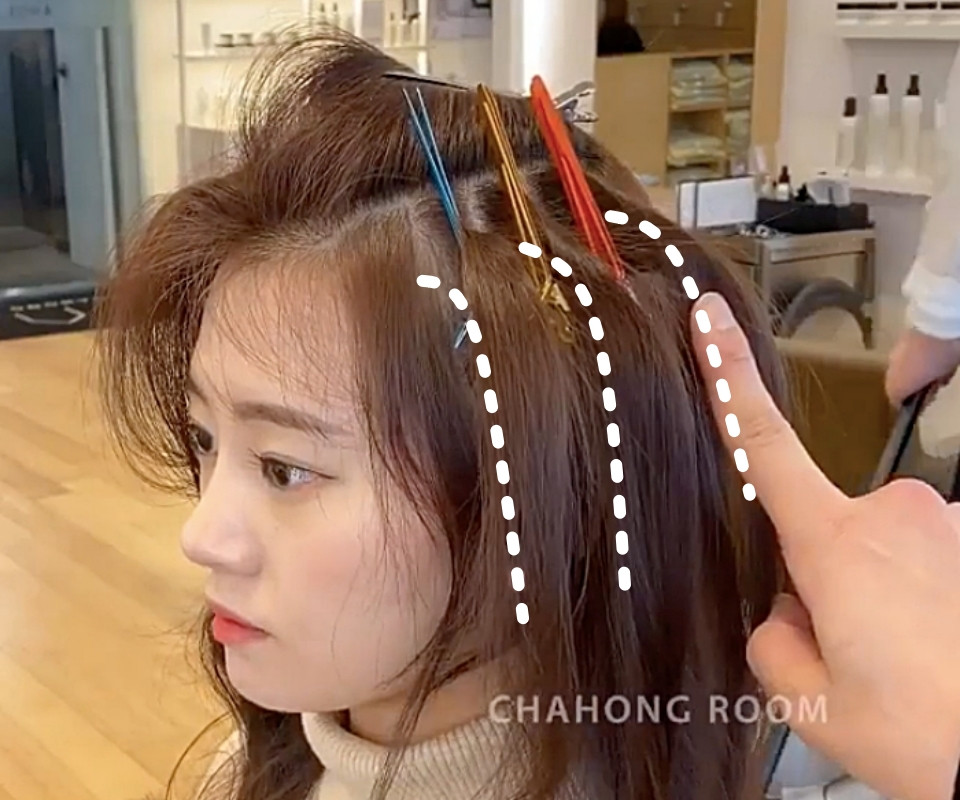 一般要夾幾束比較適合?髮型師建議3-4束最為剛好,要注意的是額頭兩側的髮際線不要夾到、避免髮際線碎髮弧度太生硬不自然。