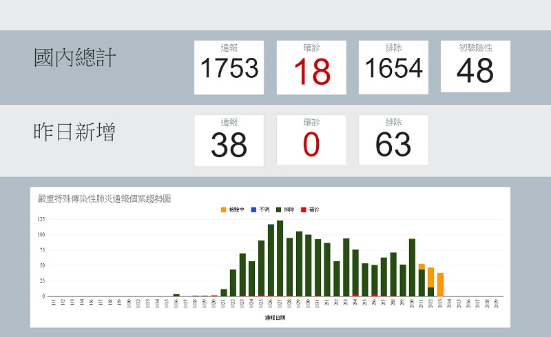 數字部分,主要是列出了確診病例數、逐日病例數、通報病例、排除病例、隔離檢驗、初檢為陰性等數據,另外也能看到相關抓取的資料,也包含了前面提到疾管署網站首頁的彙整圖。