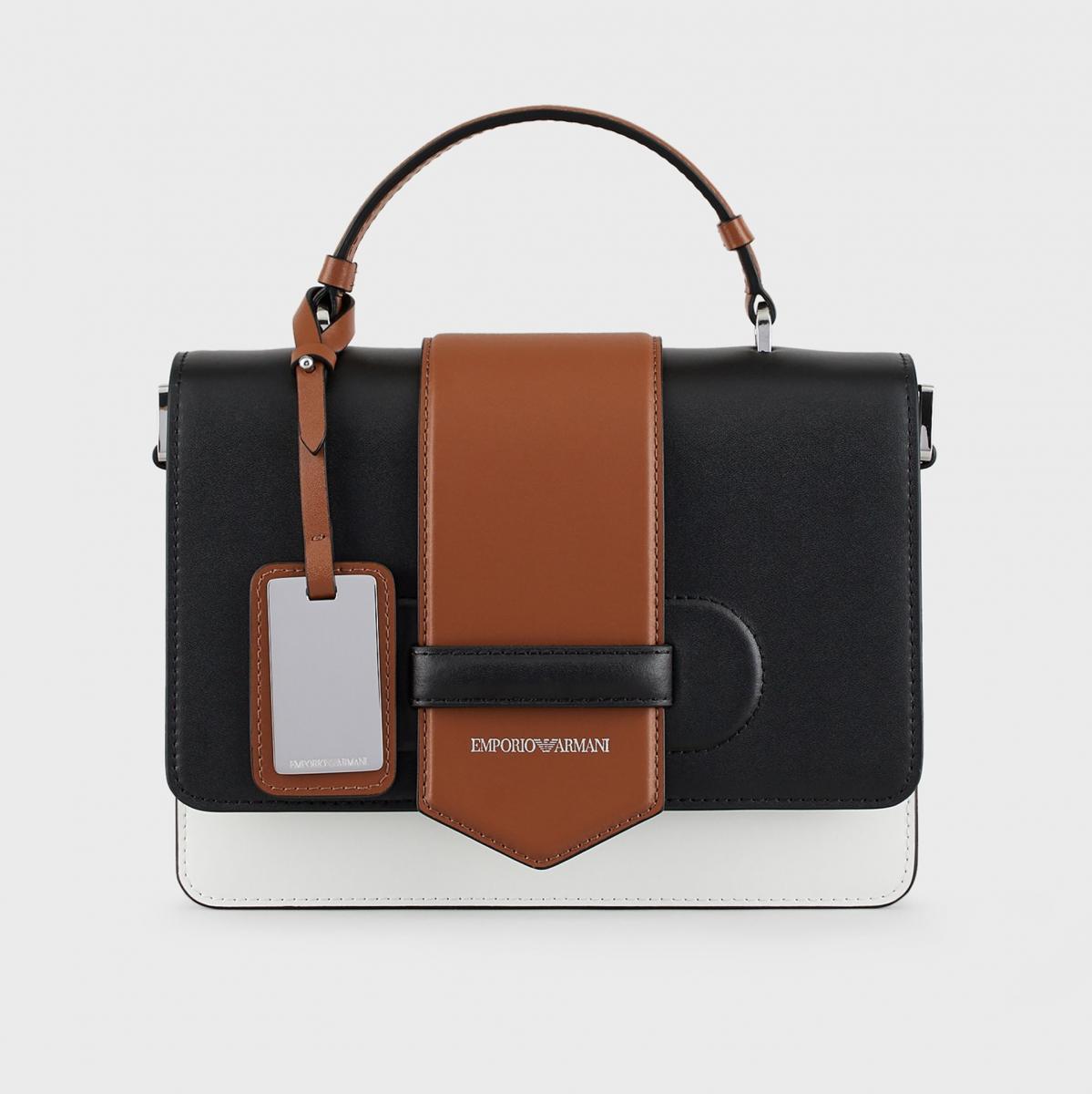 拼色包包往往比單色包更顯得活潑有趣,Emporio Armani以包浩斯風格打造這款帶有工業幾何感的掀蓋式手提包。除了手提之外,兩側可拆卸的肩揹帶讓實用度再提升,無論上班端裝或浪漫約會使用都很可以!