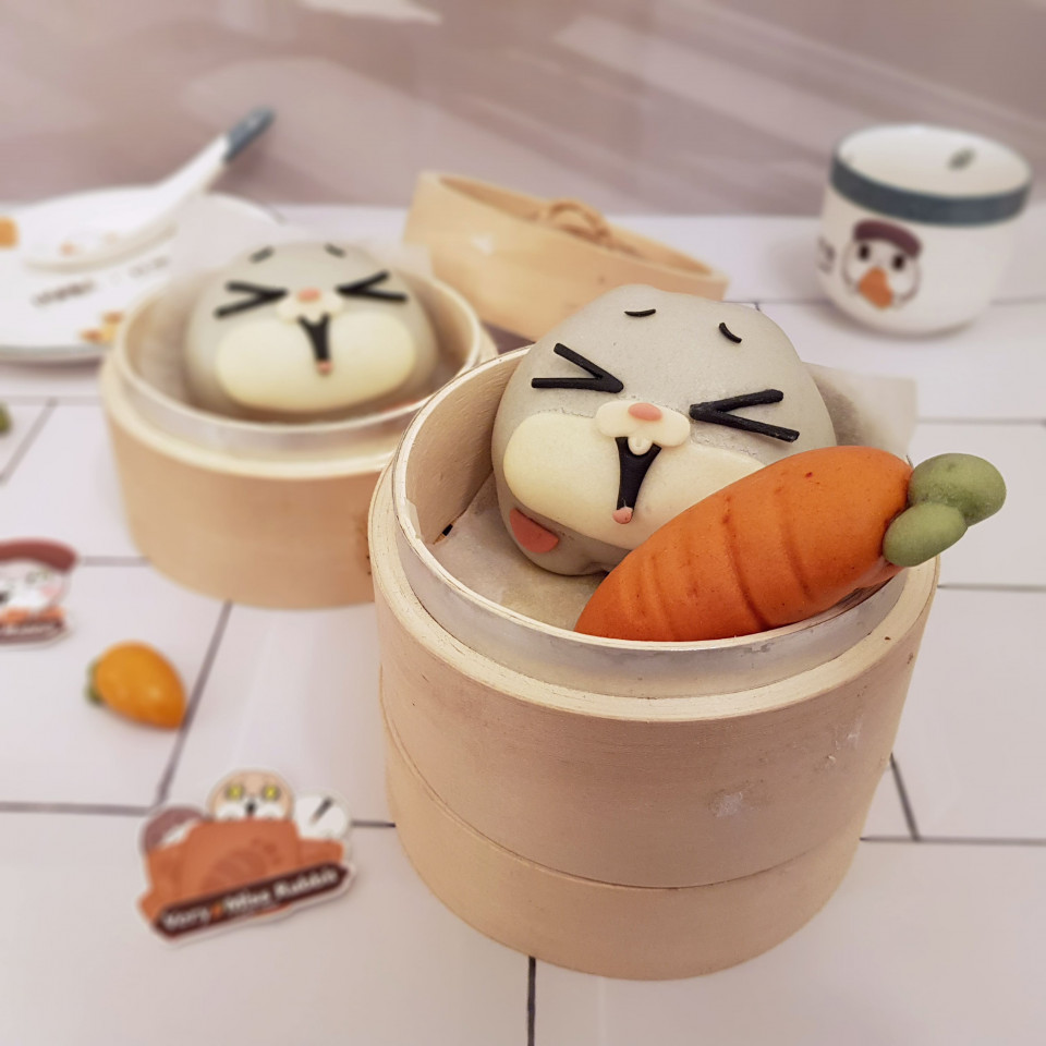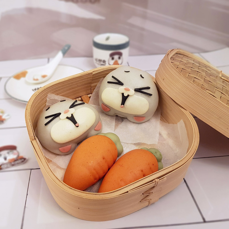 而各位現在看到的「好想兔表情包包」,每個表情的細節,可都是師傅手工貼合上去的。整顆饅頭細緻的程度,真的不是蓋的。除了好想兔之外,大家不妨也可以順便買個蘿蔔饅頭,讓好想兔與最愛的紅蘿蔔一起拍照,感覺整體更和諧可愛了呢。