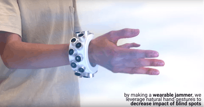 當然啦,這隻手鐲還只是原型機,看起來很笨重,一點都不時尚,但它不僅可以確保全方位干擾麥克風,而且還可以100% 消除手腕移動時所造成的盲點,比專用的固定式麥克風干擾器更有效,就連那些隱藏式麥克風都一網打盡。