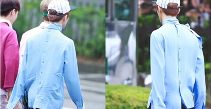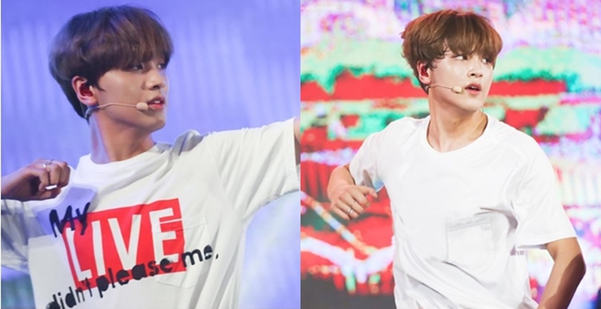 不喜歡衣服的LOGO也沒關係,站姐神手一修,楷燦這件瞬間變成清純的白T了啊XDD
