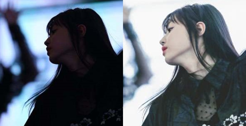 接著同樣是黑漆漆系列的還有《LOVELYZ》的美珠,難得有看鏡頭結果燈光竟然不給力?沒關係、好險有站姐幫她後天開閃光燈呢~