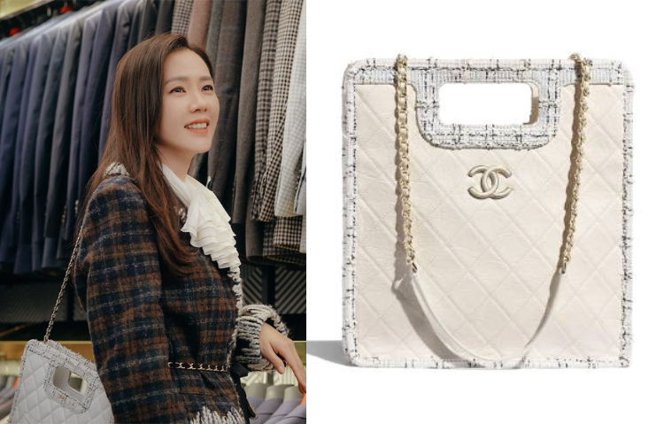 劇中尹世理從北韓返回南韓後,造型也跟著180度大翻轉,身為財閥千金身上行頭自然是貴氣逼人,像是帶著利政赫到百貨公司挑西裝時,身上成套香奈兒2019秋冬秀場款,就連肩上揹的大型皮革購物袋也是2月才上架的新品!