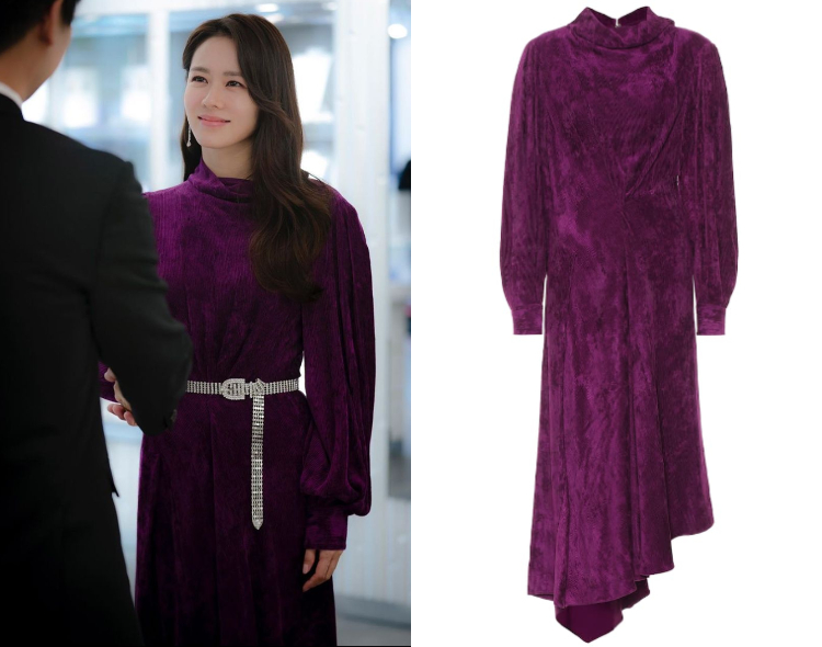 劇中為了營造出大器風範,孫藝珍出席重要會議時,可以看到身上常出現連身洋裝、風衣外套、西裝外套等單品,且版型大多以搭配墊肩的方肩輪廓。像是這套Balmain洋裝不只有墊肩細節還加上合身的繃帶彈性設計,穿上它不只有氣勢,還能讓身型更顯穠纖合度。