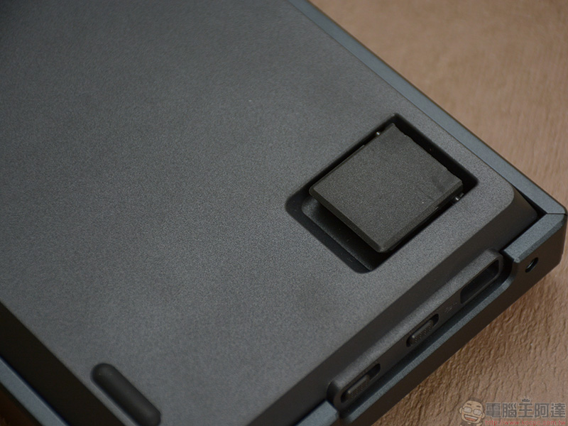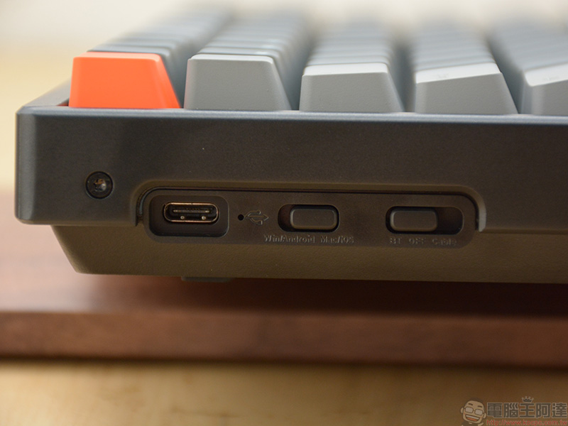 鍵盤左側則是充電 / 線材連接孔、模式切換、系統切換 / 開關的位置所在,在這部分的配置算是延續自家的主要配置方式。