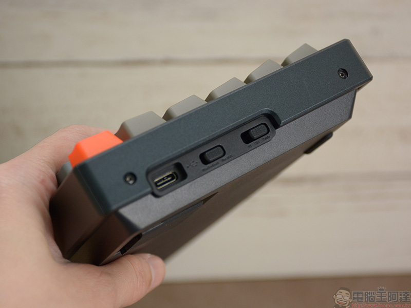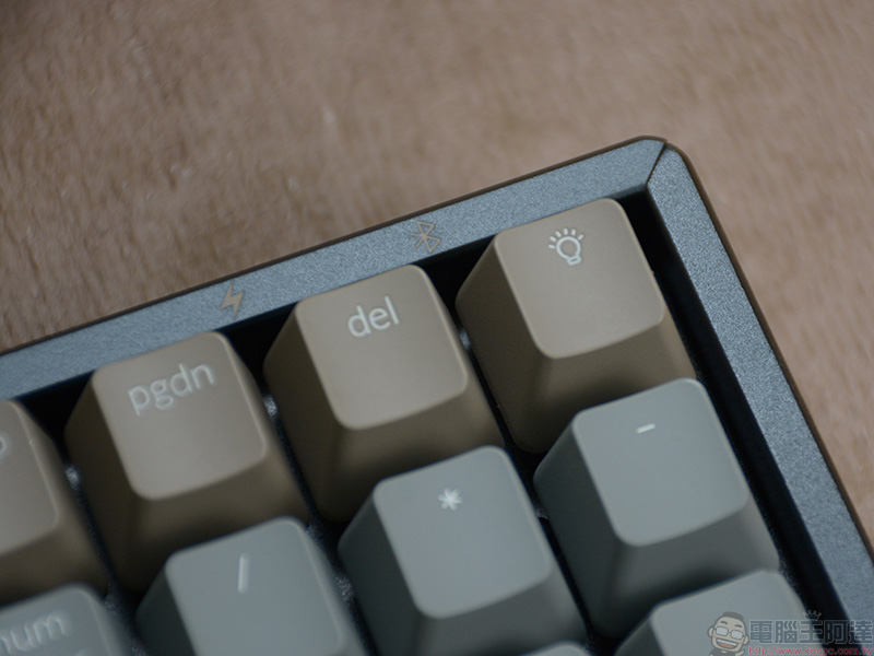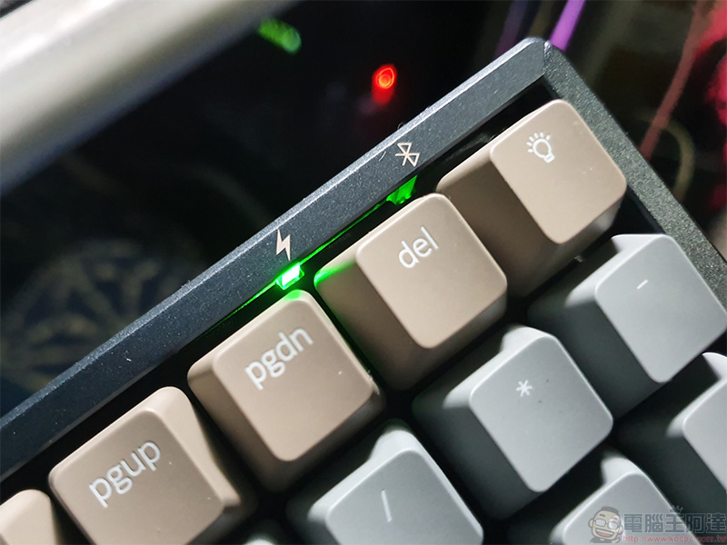 鍵盤右上角則有兩個燈號顯示,分別為藍牙與充電 / 電力顯示燈。