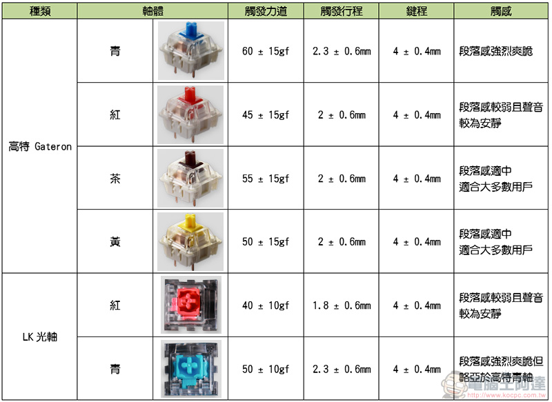 有點模糊是吧?筆者找來了對照組讓大家看一下標準機械軸與 LK 光軸的不同,一看你就知道我在說什麼啦:
