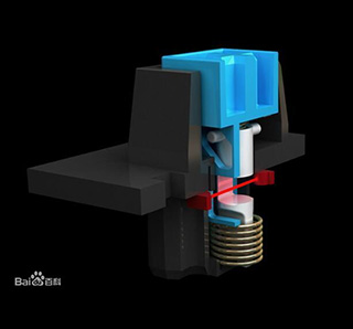 ▲左圖是靜置狀態,此時是阻斷光線的;右圖是按下按鍵時光線即可通過柵孔。(圖片來源:百度百科)