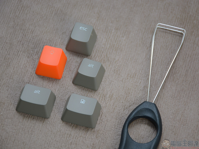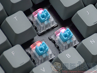不過鍵帽裡面固定方式依然是常見的十字固定的標準尺寸,所以在沒有變動的鍵帽部分你可以自行更換其它自己喜歡的鍵帽。