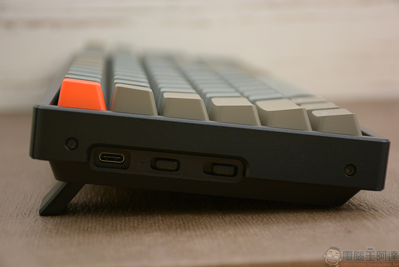 最大的不同來了!在 K4 的支架上將防滑腳墊與支架合而為一,也就是在原本的塑料材質支架外側與下方附蓋一整層防滑材質,而非坊間其它機械式鍵盤的黏貼式,近似於一體成型不易脫落、移位,這部分的設計也與之前介紹過的 K2 有很大的差異。