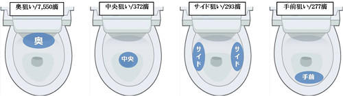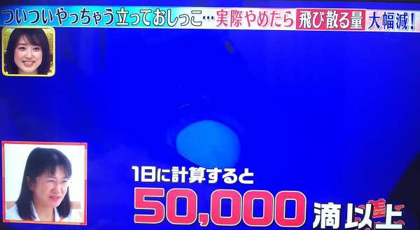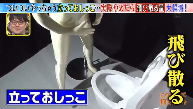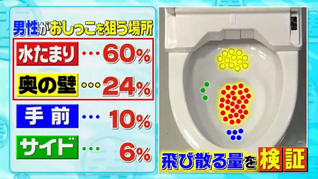 根據該節目街訪日本男性的調查結果,60%的日本男性會瞄準馬桶裡的積水排尿,而有24%會選擇對準積水上方,另外10%則會選擇積水前位置。