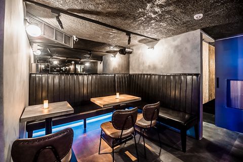 一樓的空間內裝以西式現代工業風打造,使用大量黑白灰的時髦材質搭配繽紛的霓虹燈管間接照明,半開放包廂式的空間保有一定的隱私,很適合在下班後與朋友小聚暢聊。
