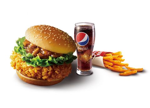 台灣肯德基不斷推陳出新,2020年就將漢堡在地化, 大膽地推出馳名中外的三杯系產品「熱炒三杯咔啦雞腿堡」,結合在地的熱炒文化,打造屬於台灣的新風味。