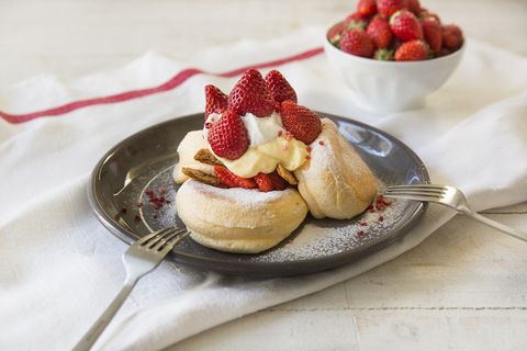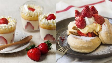 鬆餅控們看到根本要瘋了!奶香味十足的鬆餅配上大顆草莓,太誘人了吧!