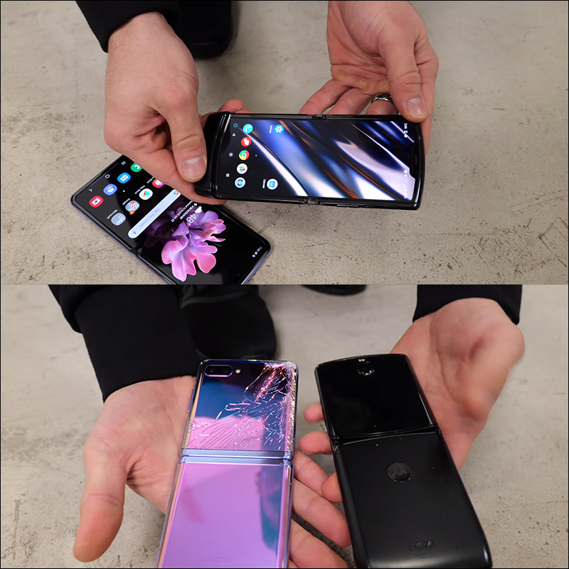 YouTuber 實測 Samsung Galaxy Z Flip 和 Moto RAZR 耐摔測試