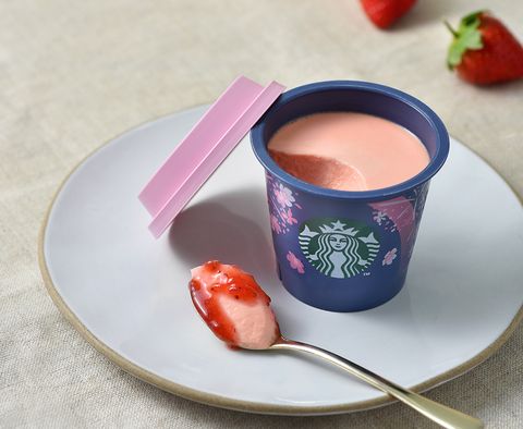 融合櫻花元素,為廣受好評的星巴克布丁穿上新裝,櫻花季搶先擁有!軟滑的布丁體中帶著草莓香氣,底層還有草莓果漿,搭配春日限定的櫻花包裝,香甜滑嫩。