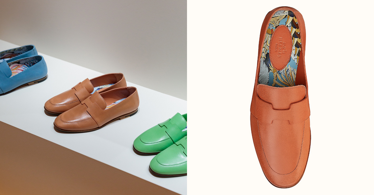 愛馬仕鞋履部門創意總監Pierre Hardy以2020年度主題「匠 ‧ 新」為主軸,為男女鞋款延伸出多樣色彩和擁有獨特細節的春夏鞋履系列。以多種色彩的山羊皮製成的樂福鞋,我門可以於鞋面上看到他運用簡單線條刻畫出的「H」字母標誌形狀,內襯則是搭配由絲巾設計師Virginie Jamin繪製的「Fantaisie Botanique」圖紋印花,帶來一抹明亮的春夏氣息。