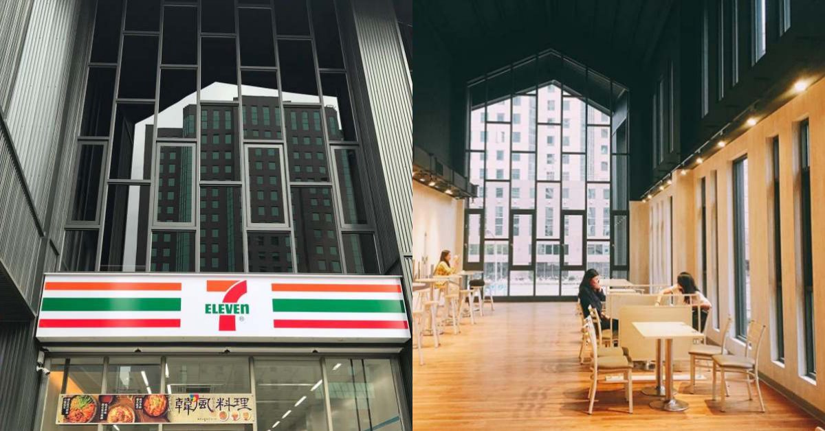這家有著歐式教堂風格的《7-Eleven》就位在高雄市前鎮區《亞新灣門市》,外觀就與一般四四方方的建築很不一樣!全黑設計只搭配彩色的《7-Eleven》招牌,以及獨特的多邊造型,樹立在高雄市街頭確實很醒目,一看到就會不知不覺被吸進去買一杯咖啡坐下來慢慢享受,就算走過路過完全不會錯過。
