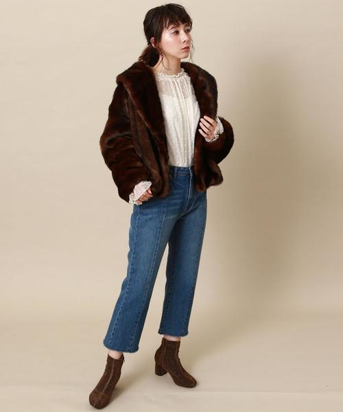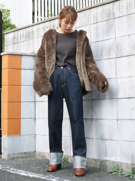 如果喜歡率性感穿搭的話,也可運用仿皮草外套連結簡約大方的氣息,以素色上衣和牛仔褲為搭配,外搭一件仿皮草外套製造質感系的個性印象,另外將牛仔褲反褶同時帶來顯瘦的修飾度。