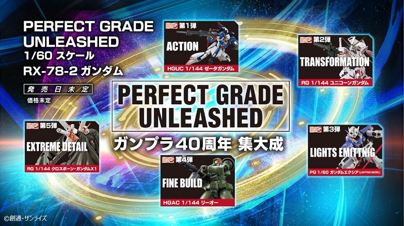 第3款是讓目前鋼彈模型的「PERFECT GRADE」,也就是 PG 系列更進一步提升,進化成「PERFECT GRADE UNLEASHED」,預計推出的首波商品是 RX-78-2 鋼彈,同樣發售日與售價皆未定。