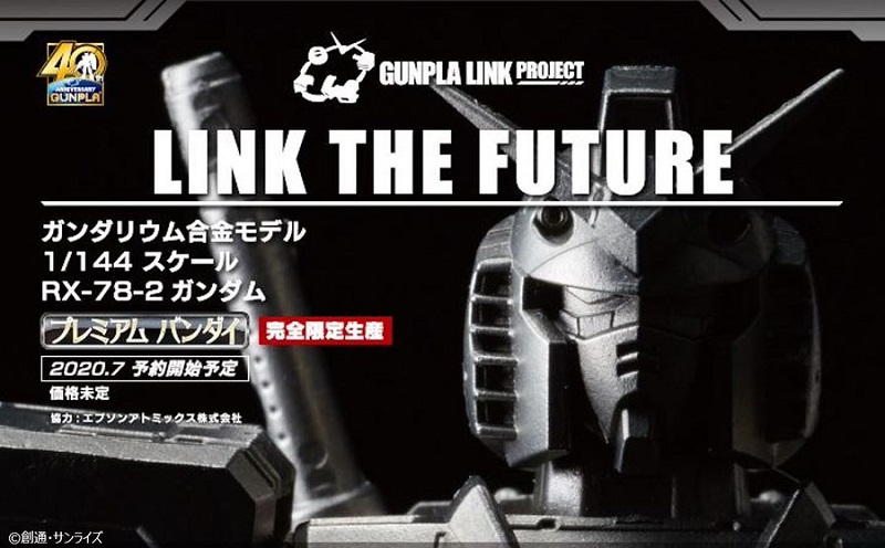 「GUNPLA LINK PROJECT」以「LINK THE FUTURE」、「LINK THE FUN」、「LINK TOWN」、「LINK CREATORS」、「LINK OTHER FIELDS」等口號開展,涵蓋了大型活動、商品、影像等紀念活動,如「LINK THE FUTURE」,公開了商品的各種未來可能性,目前公開3款商品:第一款為以鈦、鋁、氧化釔,搭配最新金屬成型技術,打造出「地球製」的鋼彈尼姆合金1/144 RX-78-2 鋼彈,商品預定 7 月在官方商店開放預購。