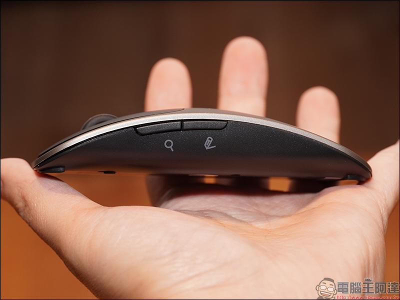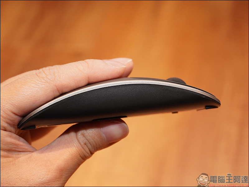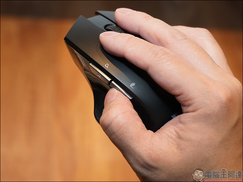 從 WA-I09MB 滑鼠的機身側面可發現這款滑鼠相當輕薄,也更符合商務人士外出辦公的攜帶需求: