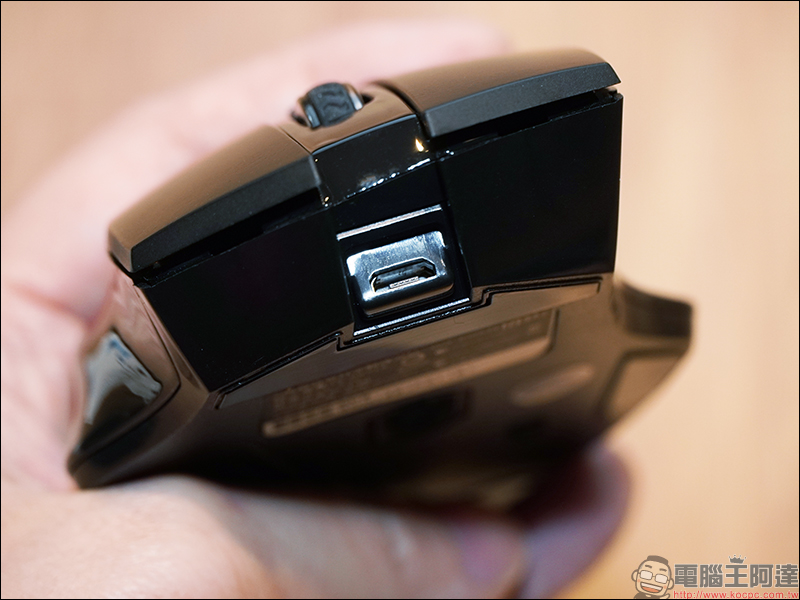 WA-I08MB 滑鼠將 Micro-USB 充電口設計在滑鼠前方,能讓使用者更方便為滑鼠充電: