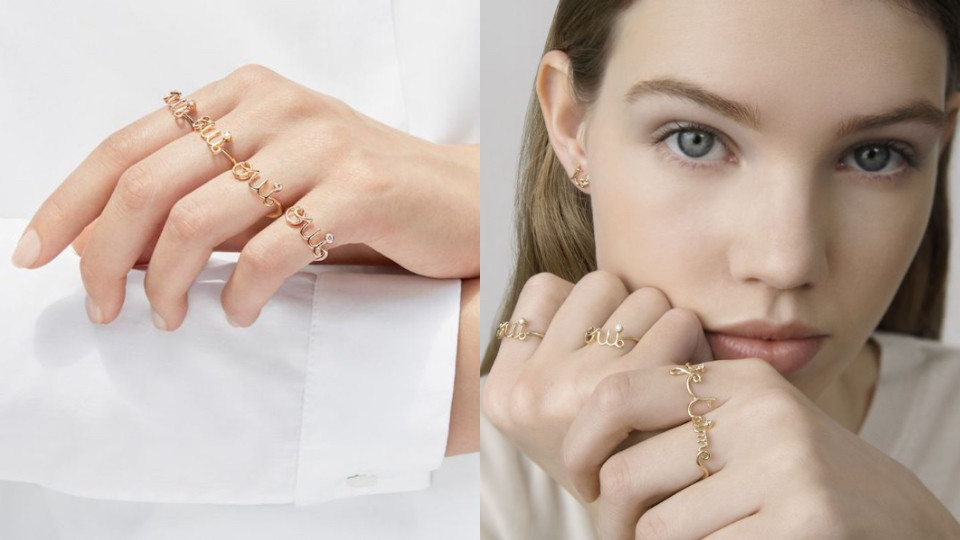 一向最懂的女人心的 Dior 用法語「Je t'aime(我愛你)」及「Toi Moi(你和我)」草寫字體推出系列輕珠寶,一系列的組戒是最近的流行!也可以變成浪漫情人節禮物的首選啊~
