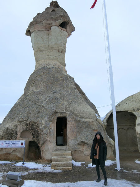 不同於在伊斯坦堡穿的長大衣,我在Cappadocia穿的是及膝的羽絨外套,並且有帽子
