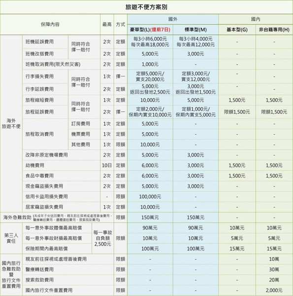 這邊是我保國泰旅遊不便險的詳細保障內容,給大家參考看看