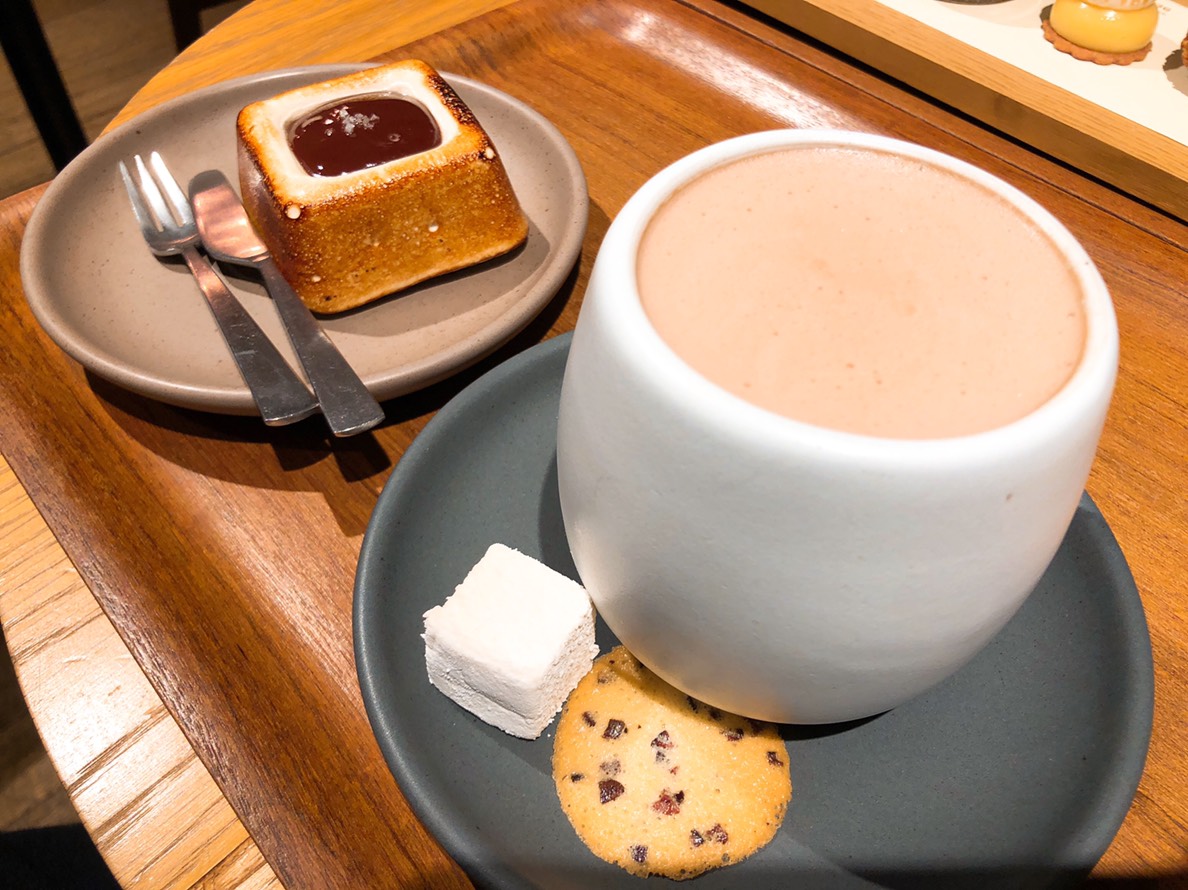 當天還嘗試了藏前店限定的「KURAMAE HOT CHOCOLATE」,有別於一般的熱巧克力,裡頭還添加了静岡縣產,有機栽培的焙茶。除了熱巧克力該有的滑潤香醇,入口後還能感受焙茶特有的清香餘韻,印象中完全沒關係的兩種飲品堆疊帶出不同的新滋味。