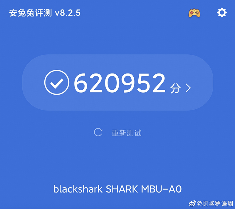 另外,黑鯊科技現任 CEO 羅語週也在微博分享了在實驗室測試出的安兔兔跑分,成績達到 620,952 分。因此也能大膽推測,黑鯊遊戲手機 3 要在安兔兔評測跑出超過 60 萬分的成績可說是輕而易舉: