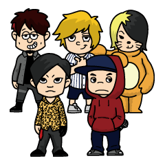 日本京都出身的ROTTENGRAFFTY(ロットングラフティー)去年迎來樂團結成20週年,曲風融合了另類搖滾、嘻哈與重金屬,現場演出極有渲染力,兩款貼圖將團員特色完整呈現。