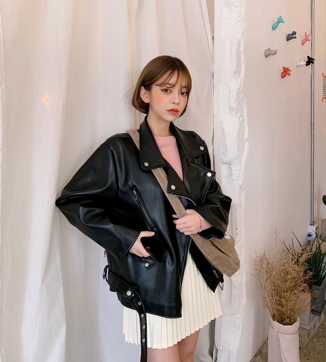 禮拜五晚上要跟姊妹們出去玩,肯定在辣度上不能輸,今天就以皮革外套搭配短裙一決勝負!下身可以搭配包覆性夠的黑靴讓腿看起來超級長,就算要逛街要去夜店也能站一天!