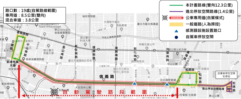 臺北市政府交通局近期公開,先前與台灣智慧駕駛股份有限公司合作,並向經濟部申請於臺北市信義路公車專用道進行夜間自駕巴士測試,2月18日正式公告核准通過,「臺北市信義路公車專用道自駕巴士創新實驗計畫」正式啟動,並預計經3個月整備工作後,於2020年5月上路測試。