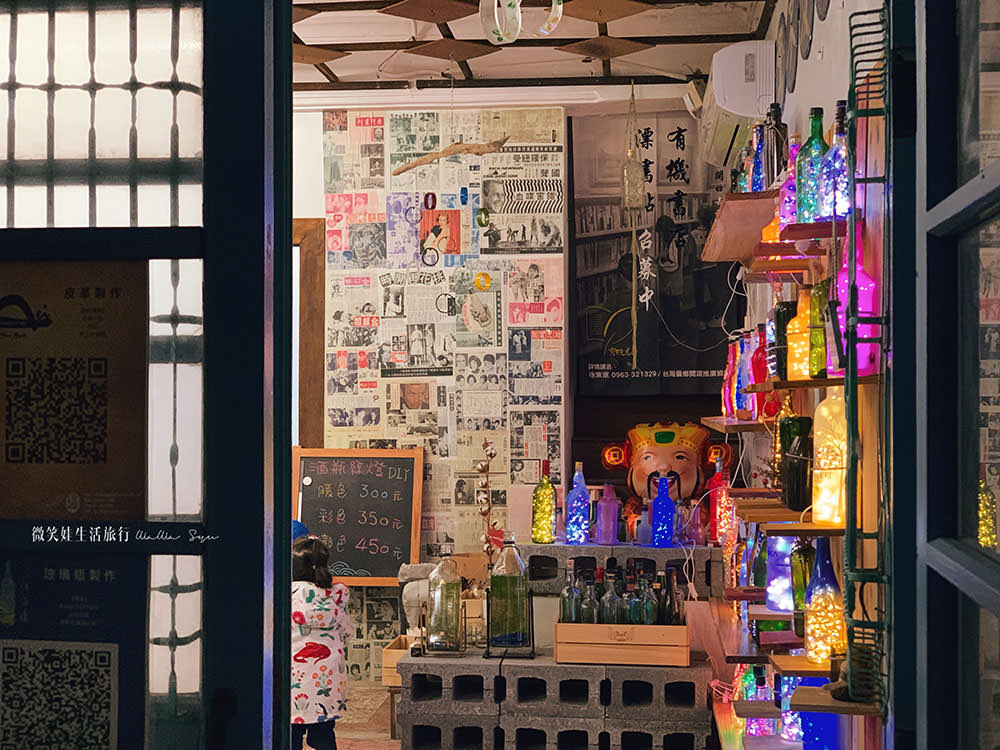 更重要的是我們很幸運是在雨後來到頭城老街,伴隨著老街的點燈,燈光閃閃而地面上的水光搖曳,讓整個頭城老街的點燈更具有美感。真的很建議大家可以從下午的時間就來到這開始一整個系列的遊玩,找一家有趣的店進去坐坐,或是選擇當地手作DIY製作玻璃燈罐「媽媽號」,這剛好是我路過看到,覺得超美的,下次會想花時間過去製作看看!!媽媽號也很特別,前身是「含笑食堂」正式變身為「媽媽號」是一個親子、藝文活動以及兒童才藝課程的場地,會很喜歡他也是有原因,因為微笑娃也看過幾次的含笑食堂電視劇,不知道被哭了幾次,一個充滿親情與美食的戲劇,裡面的龍劭華、苗可麗跟已故的楊可涵跟多位演員演技實在太精彩,每次都讓我痛到心裡去,加上「含笑」是一種花,對我來說也是從小到大的一種記憶香味,在外婆家的大院門口,我們三家人中間的花園就是當年外公的阿公種下的含笑,每到開花的季節,隨著風飄搖曳著陣陣香味,我曾以為他是玉蘭花呢。