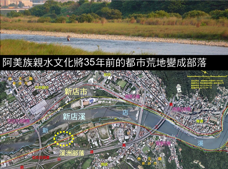 位於新店溪洲部落族人多為阿美族人,原居於花蓮與台東地區,在台北區域能看到原住民的聚落真的少之又少,這次因為步行在這新店溪之間意外發現了這個聚落,而旁邊還有一大塊地是新北市政府正在籌備原住民河濱新聚落,而原住民河濱聚落因開發與拓展,早已長期存在著結構問題,不僅僅是單純的居住,另外還有原住民族人因為遷移所造成的語言凋零、文化斷層的問題,因此新北市政府在考量尊重原住民生活文化特性的前提下,設計了「原住民河濱聚落安遷計畫」,希望能適時提供安全的住所又不干預原住民精神,協助原住民傳承傳統的文化與生活,但是目前尚未得知什麼時候聚落會工程完畢,而今天我們拍攝的地點則是在原始聚落,牆上跟建築從遠處就可以看見他與眾不同之處,一眼就能看出他的歷史痕跡與美。