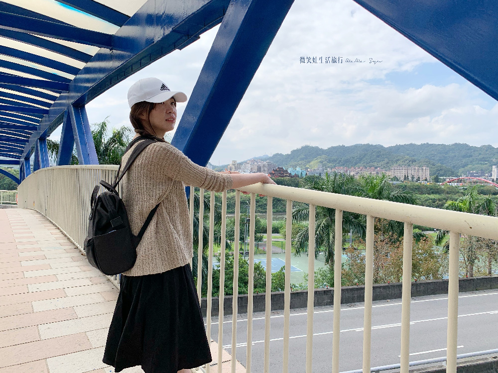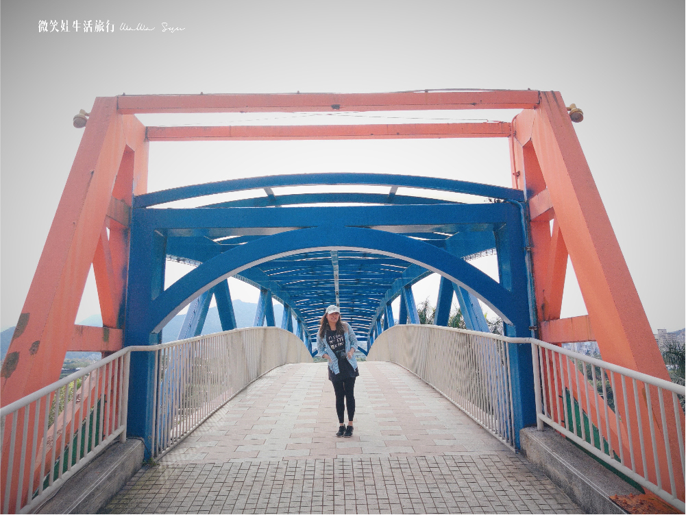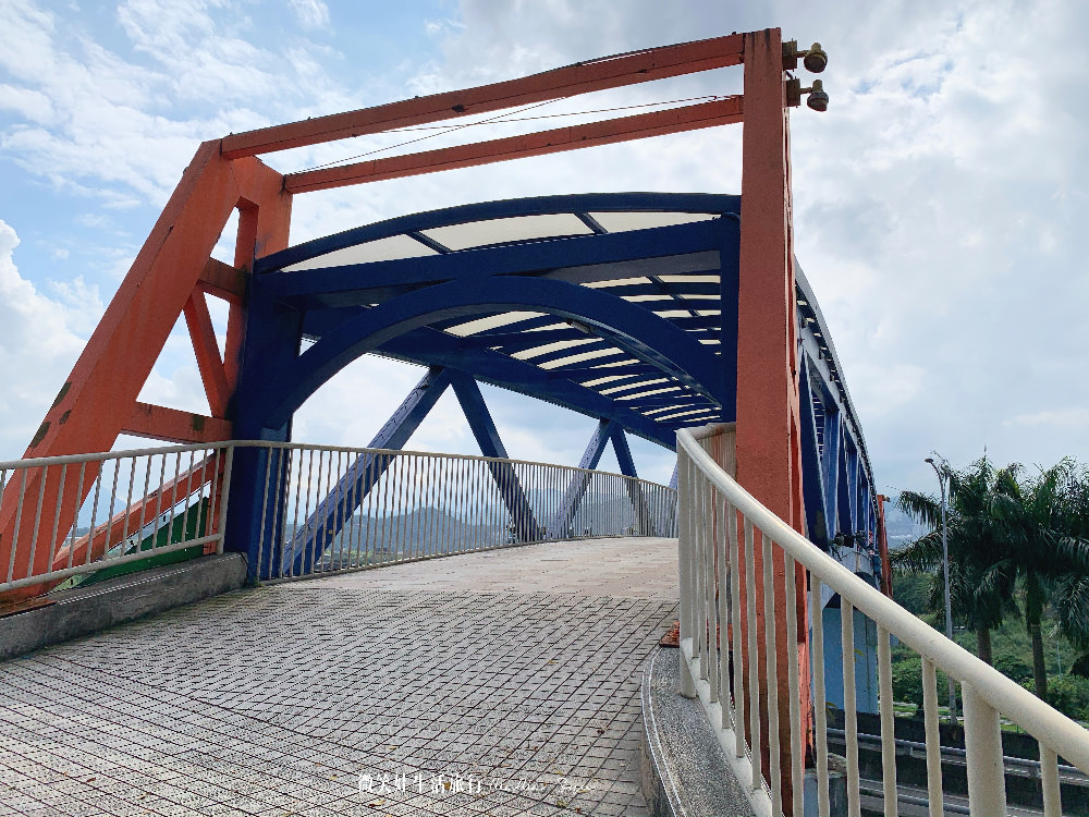藍色的中央人行陸橋其實要找到他的入口沒有很容易,必須要從一個社區的入口處直走才會抵達(中央新村旁的天橋),但是這裡簡單大方的藍橘色相當好拍,也可以從這邊直接走向陽光運動公園網球場,再連接自行車路線一直往前邁進,我們整整繞了整個新店小碧潭陽光運動公園一圈,其實如果要走還可以走更深入,這次我們這樣約步行3小時左右,慢慢走慢慢拍雖然當天天氣有點熱,但是走在這裡有微風徐徐,還是舒服的成分多一點。