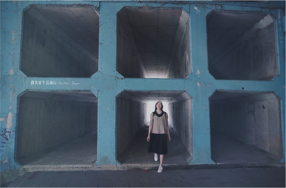 主題六 停車場附近帥氣藍灰洞洞牆