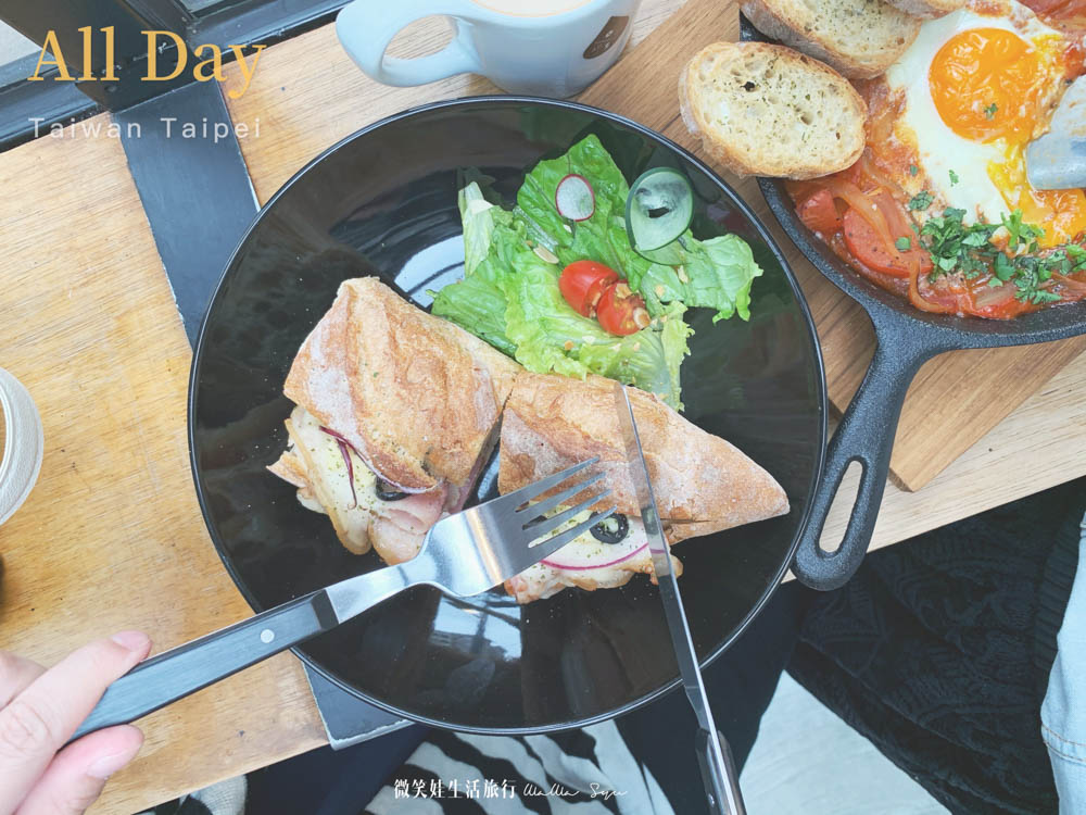 據說ALL DAY ROASTING COMPANY的餐點與甜點都是老闆娘精選製作的,雖然款式不多種,但是每一款都有人大力推薦,這次微笑娃點了北非番茄燉蛋以及帶皮火腿三明治,甜點是點一個超級厲害的蘋果派,吃了絕對不會失望!已列入我必點的ALL DAY ROASTING COMPANY菜單筆記本之一了。