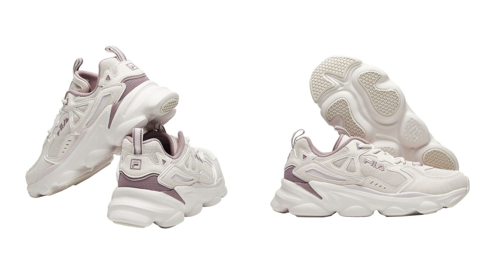 FILA新款運動老爹鞋:「煙燻淡粉×奶油白」